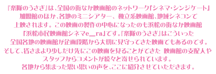 人生のかけがえのない“ひと時”の体験が、こんなにも素敵なことを「楽隊のうさぎ」は語りかけてくれる。
